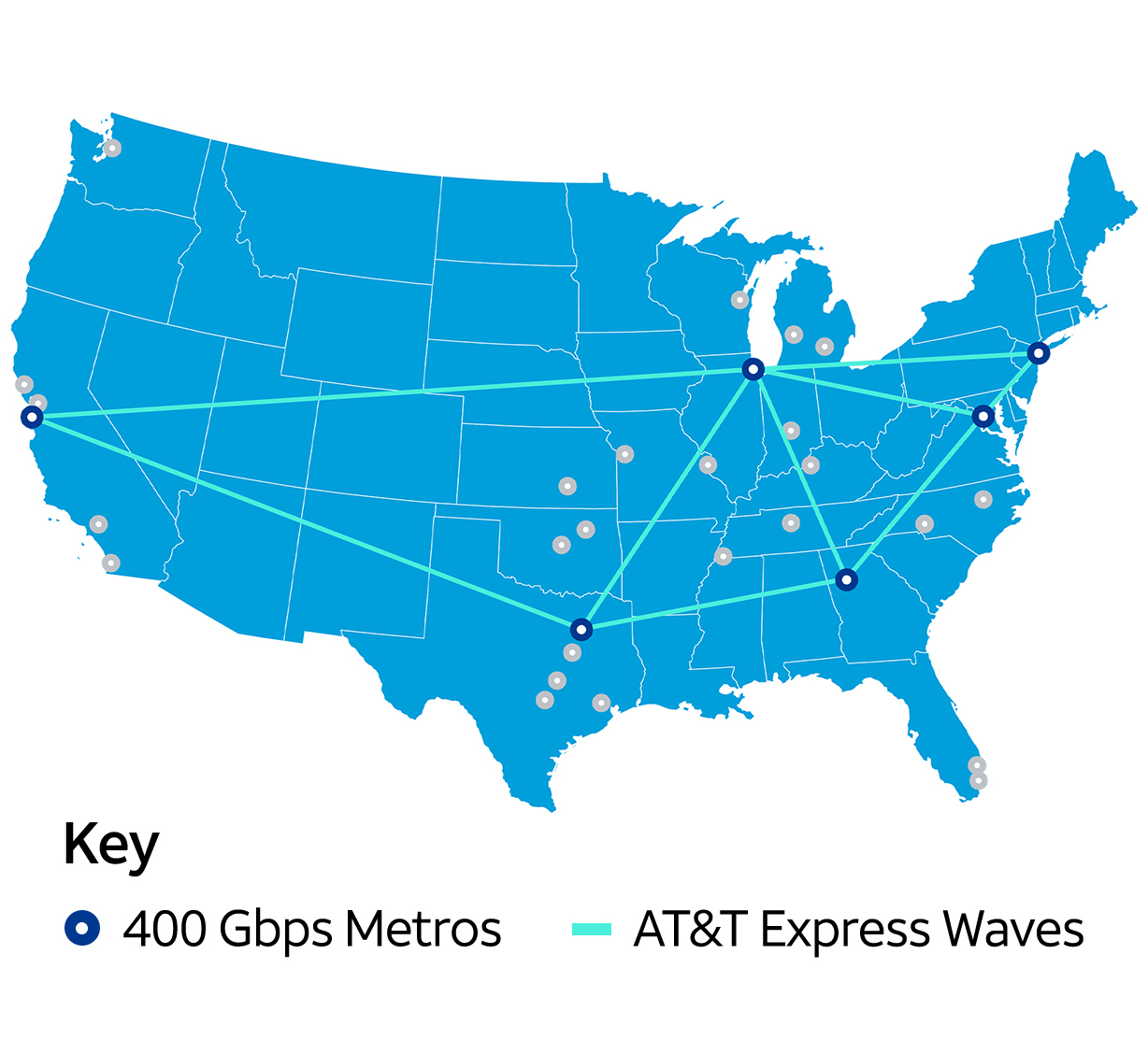 Cities supporting Express Waves in bold. The 400 Gbps footprint continues to expand.